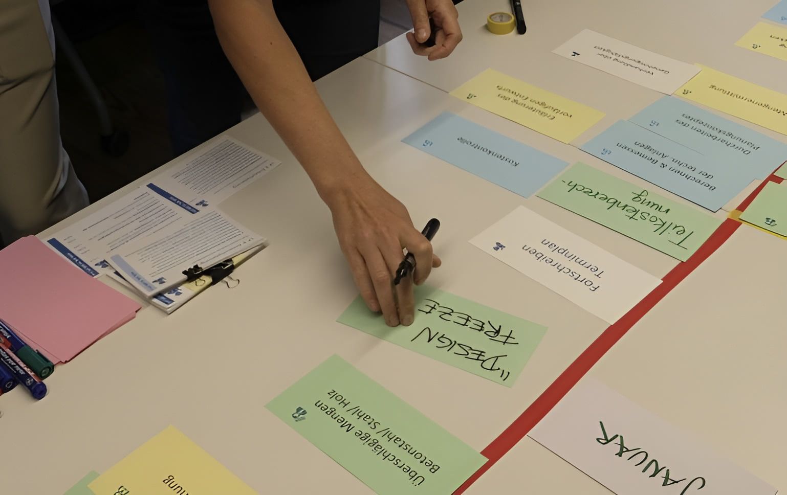 Statt passivem Zuhören steht das aktive Gestalten im Mittelpunkt: die Teilnehmer schlüpfen in verschiedene Projektrollen, übernehmen Verantwortung für ihren Aufgabenbereich und erleben, wie sie mit klarer Kommunikation ein hohes Maß an Verbindlichkeit im Team erreichen.